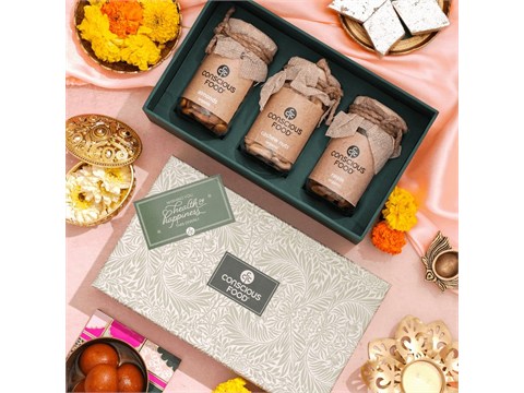 Conscious Food Dry Fruits Gift Pack (Almonds + Cashews + Raisins) 300 g, 300 g is a thoughtfully curated gift pack featuring premium dry fruits, nuts and treats. Beautifully packaged and ready to gift, it’s perfect for festivals, weddings, corporate gifting and special occasions. Each item is carefully chosen for freshness, taste and visual appeal, making it a memorable present. Share it with family, friends, colleagues and loved ones to celebrate moments that matter. Suitable as a wholesome alternative to traditional sweets, especially for the health conscious. Store in a cool, dry place; refrigerate after opening to retain crunch and natural aroma. An effortless way to send warmth, wishes and wellness in one elegant box.