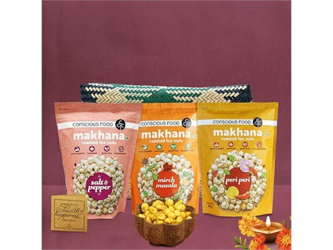 Conscious Food Yummy Munchies Makhana Gift Pack, 135 g is a thoughtfully curated gift pack featuring premium dry fruits, nuts and treats. Beautifully packaged and ready to gift, it’s perfect for festivals, weddings, corporate gifting and special occasions. Each item is carefully chosen for freshness, taste and visual appeal, making it a memorable present. Share it with family, friends, colleagues and loved ones to celebrate moments that matter. Suitable as a wholesome alternative to traditional sweets, especially for the health conscious. Store in a cool, dry place; refrigerate after opening to retain crunch and natural aroma. An effortless way to send warmth, wishes and wellness in one elegant box.
