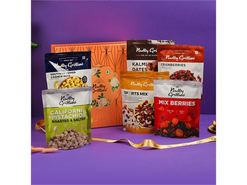 Nutty Gritties Premium Dry Fruit Gift Box (Variety of 6), 1.5 kg is a thoughtfully curated gift pack featuring premium dry fruits, nuts and treats. Beautifully packaged and ready to gift, it’s perfect for festivals, weddings, corporate gifting and special occasions. Each item is carefully chosen for freshness, taste and visual appeal, making it a memorable present. Share it with family, friends, colleagues and loved ones to celebrate moments that matter. Suitable as a wholesome alternative to traditional sweets, especially for the health conscious. Store in a cool, dry place; refrigerate after opening to retain crunch and natural aroma. An effortless way to send warmth, wishes and wellness in one elegant box.